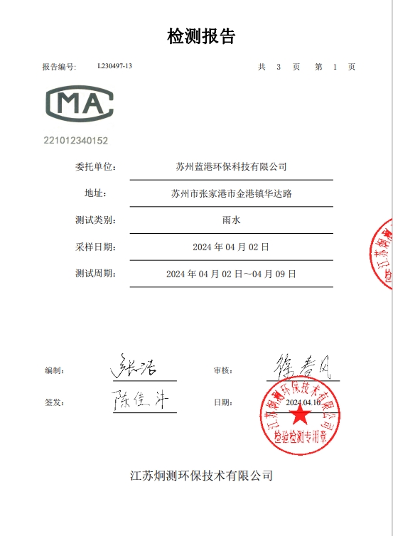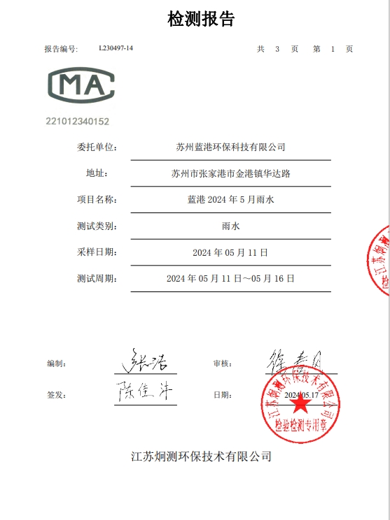 蘇州藍港環(huán)??萍加邢薰緳z測報告已公示,詳情請查...